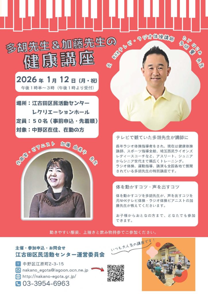動きやすい服装、上履きと飲み物持参でご参加ください。