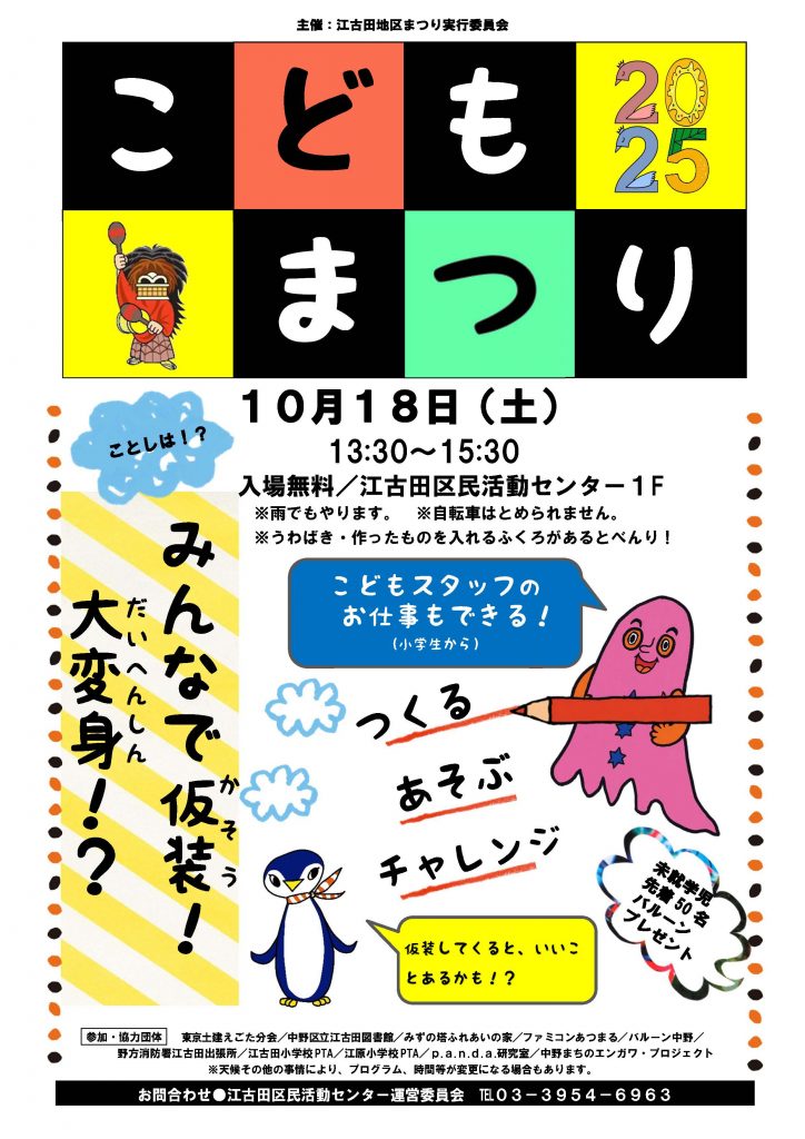 10月18日(土)、19日(日)は江古田地区まつりを開催します。