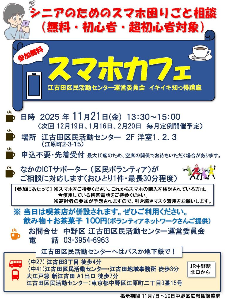 なかのICTサポーターさんのご協力で、毎月1回開催しています。